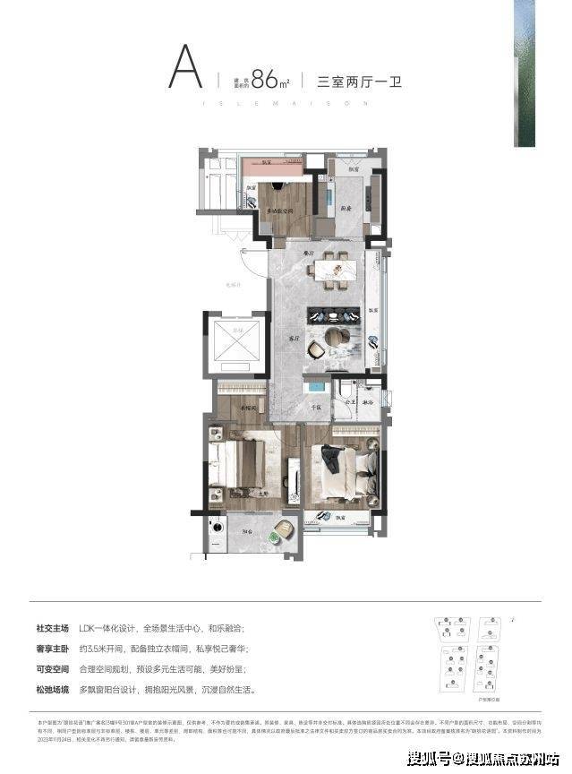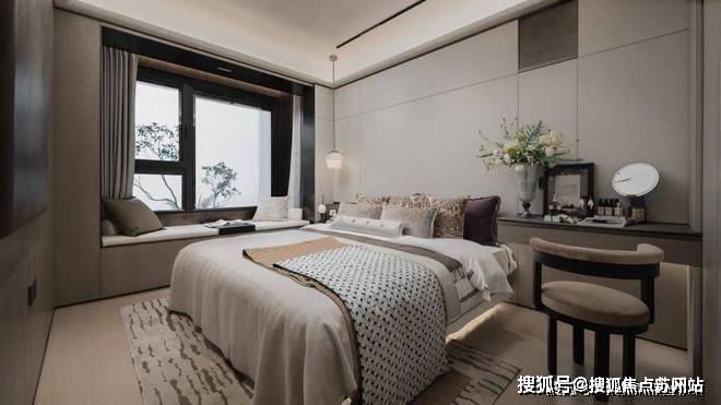 第四,主卧约3.5米的开间+宽面阳台+步入式衣帽间,对于一个约86㎡的紧凑型3房而言,这样的主卧真的太难得了。