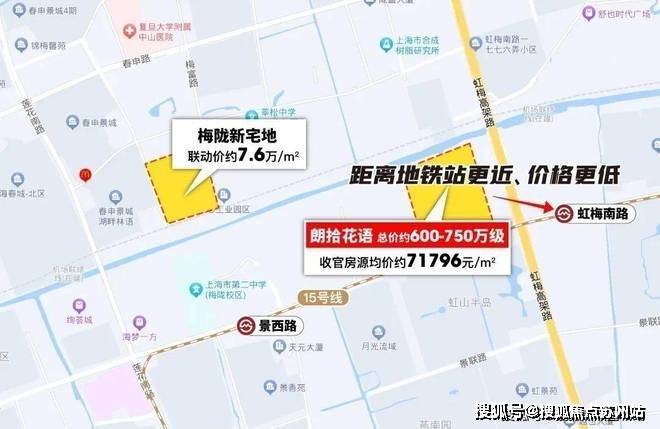 前不久梅陇的另外一块宅地出让,地块距离地铁站步行约1.4km,联动价约7.6万/㎡。